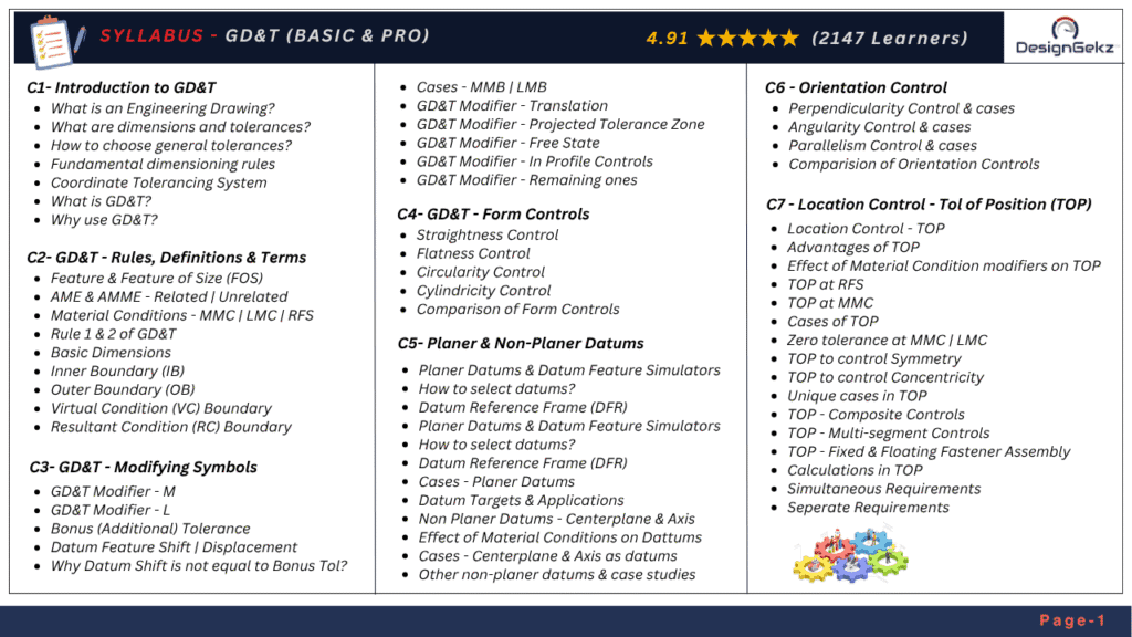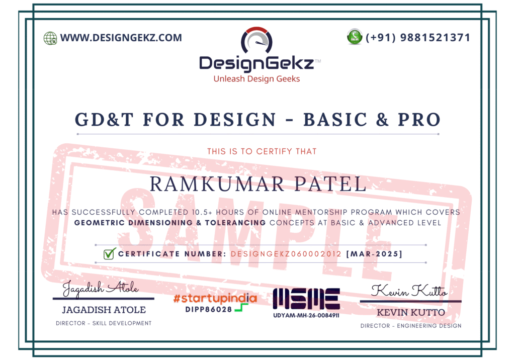 DesignGekz® Academy certified GD&T (Basic & Pro), online mentorship program in Live + 24×7 online mode is one of the most in demand certification program which covers GD&T – fundamental and advanced level concepts as per ASME Y14.5 along with case studies to demonstrate application of GD&T.